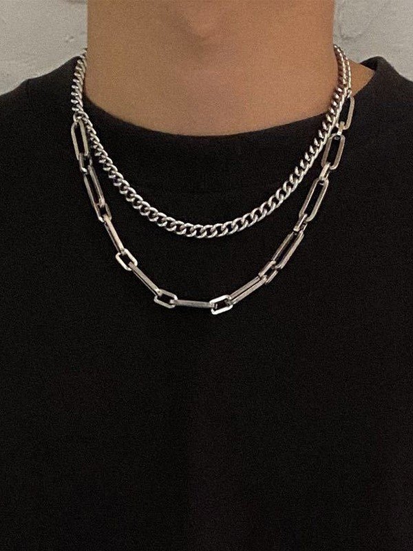 Collar de cadena de eslabones de doble capa para hombre