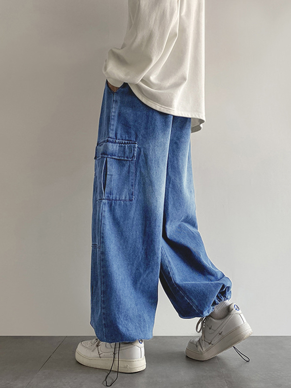 Jeans sueltos con múltiples bolsillos y estampado colorido para hombre
