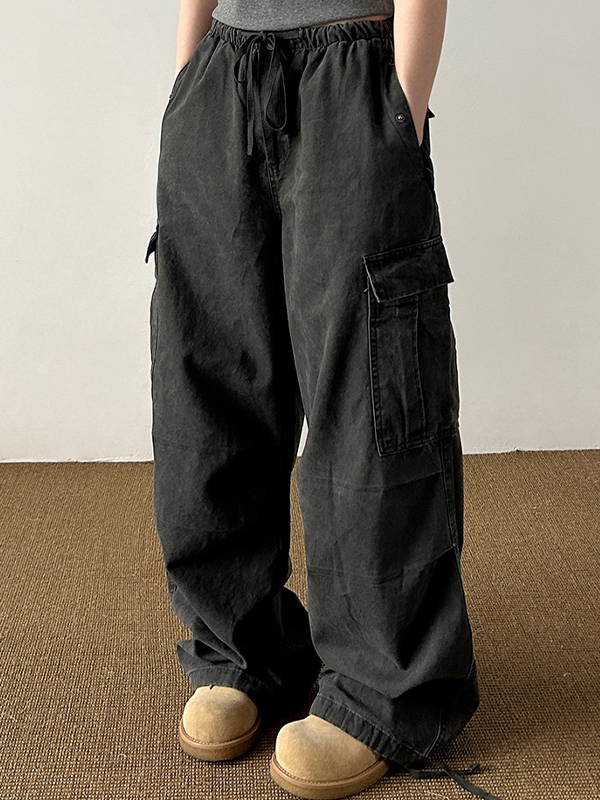Pantalones de pierna ancha colgantes marrones vintage para hombre