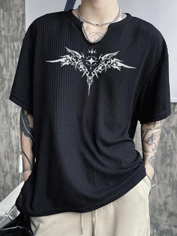 Camiseta de manga corta con cuello y estampado de alas para hombre