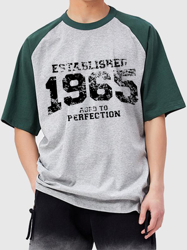 Camiseta de manga corta con estampado de letras raglán para hombre