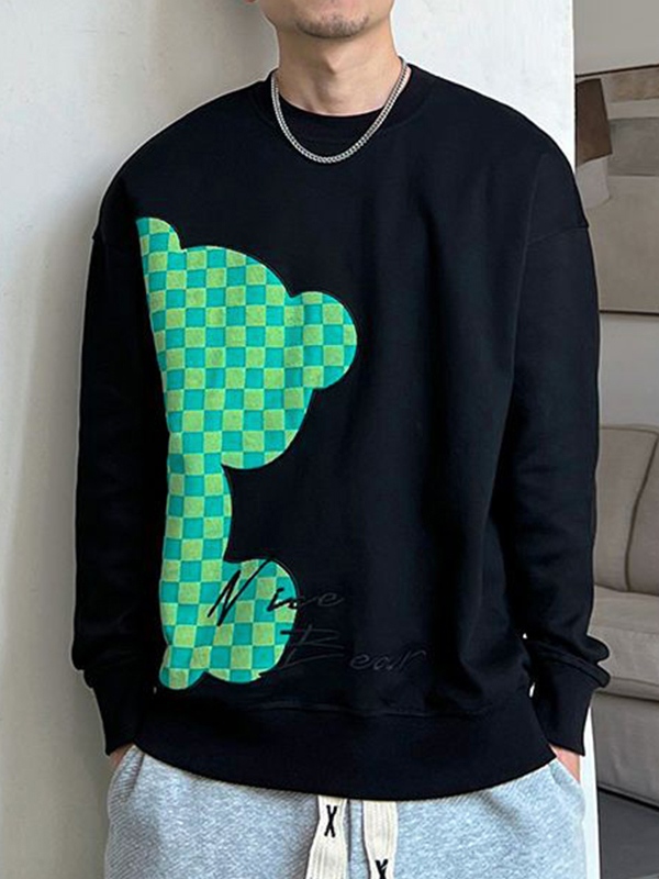 Sudadera de hombre con estampado de osos a cuadros