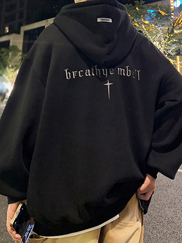 Sudadera con capucha y cremallera con letras góticas para hombre