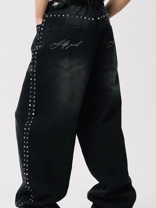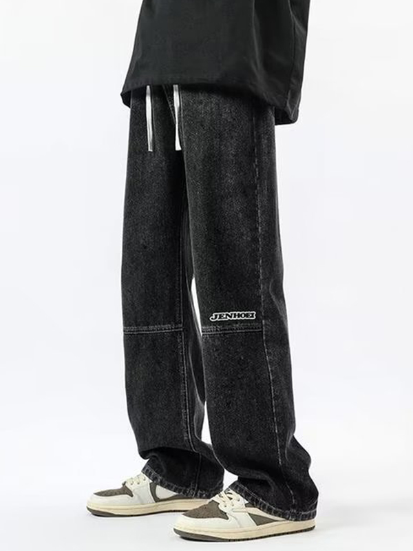 Vaqueros holgados con cordón y bordado de letras para hombre