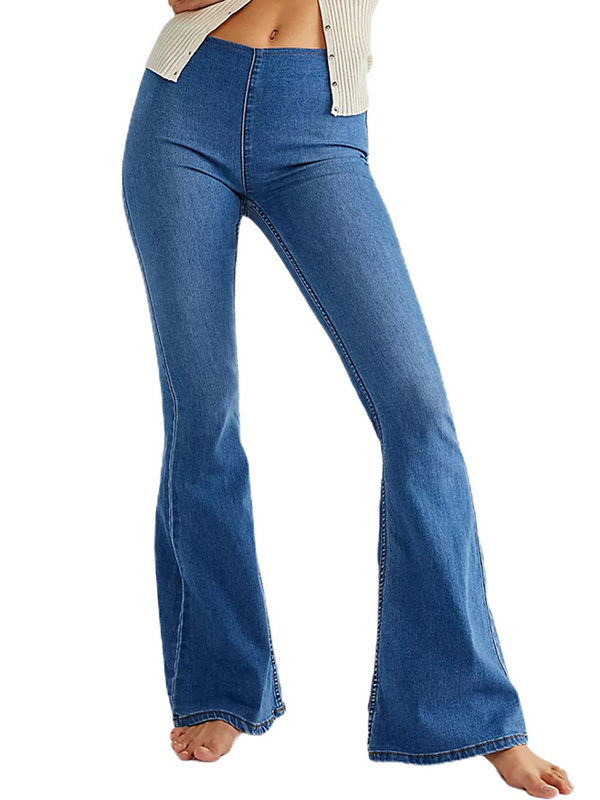 Vaqueros acampanados hasta el suelo, de cintura alta y ligeramente levantados