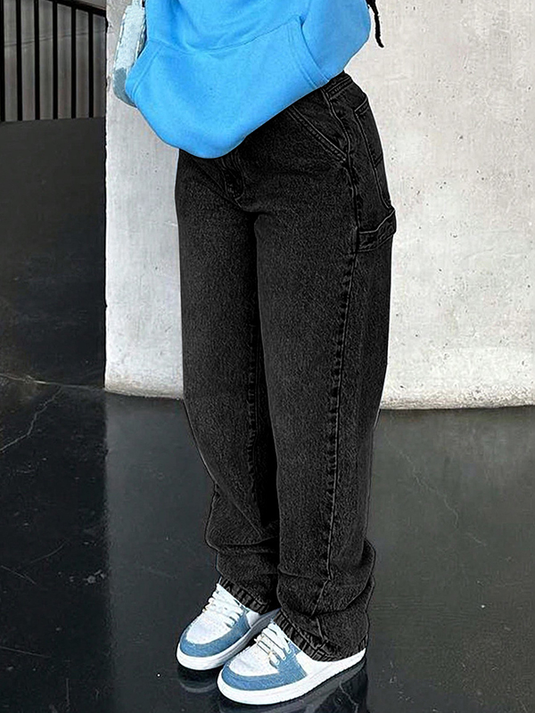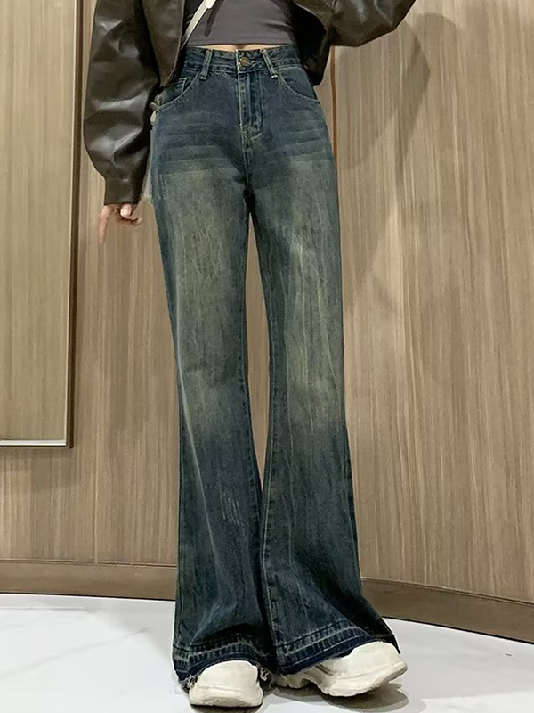Vaqueros acampanados hasta el suelo, de cintura alta y ligeramente levantados