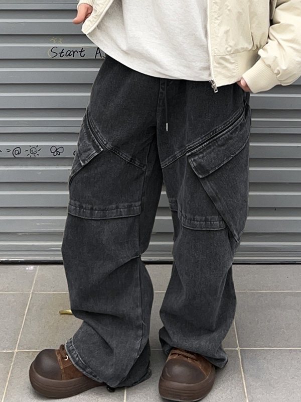 Vaqueros cargo holgados con bolsillo grande para hombre