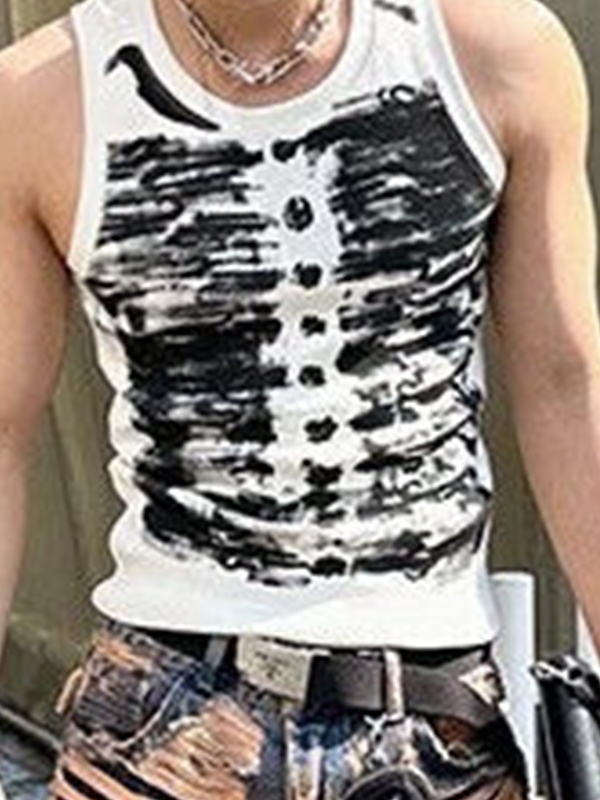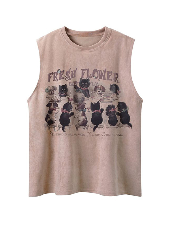 Chaleco con estampado de dibujos animados y letras de ante para hombre