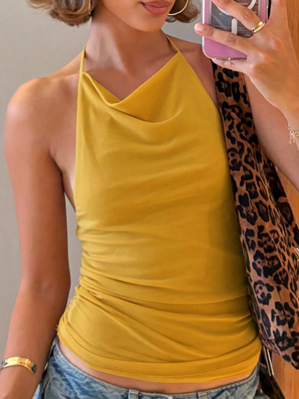 Top camisero ajustado y sexy de corte bajo con pliegues