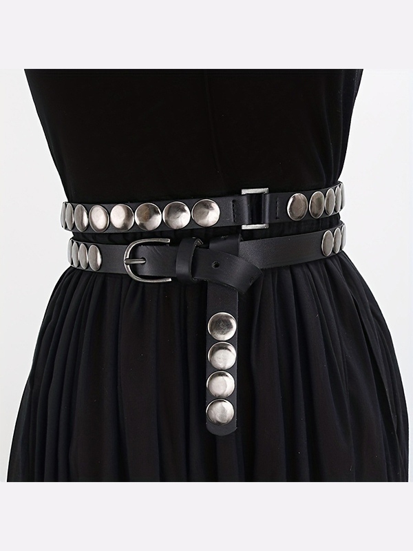 Cinturón de hebilla de decoración de remache vintage de color sólido