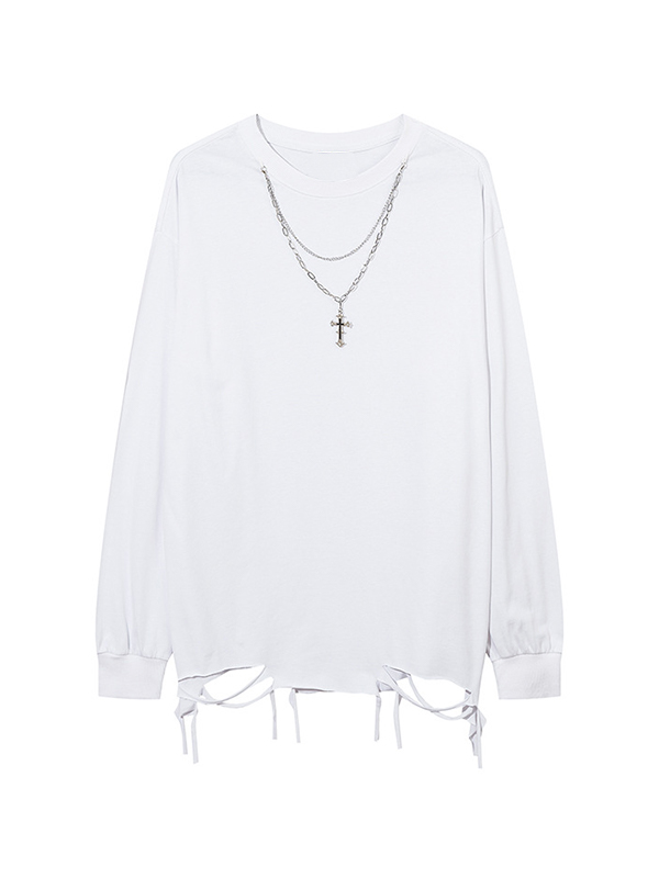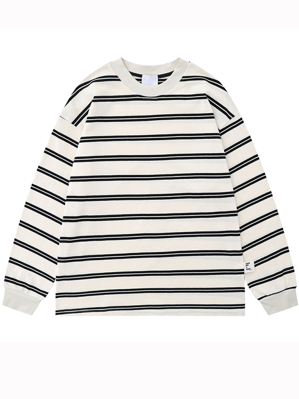 Camiseta de manga larga holgada con estampado de rayas de calle para hombre