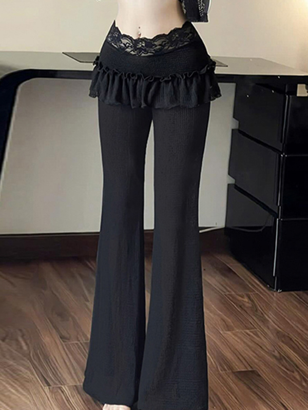 Pantalones acampanados con ribete de madera y encaje de patchwork