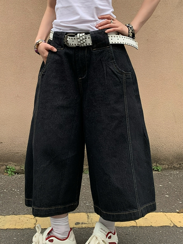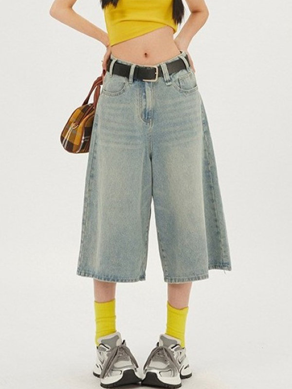 Pantalones cortos de mezclilla versátiles de pierna ancha