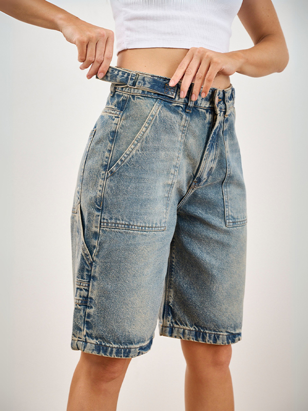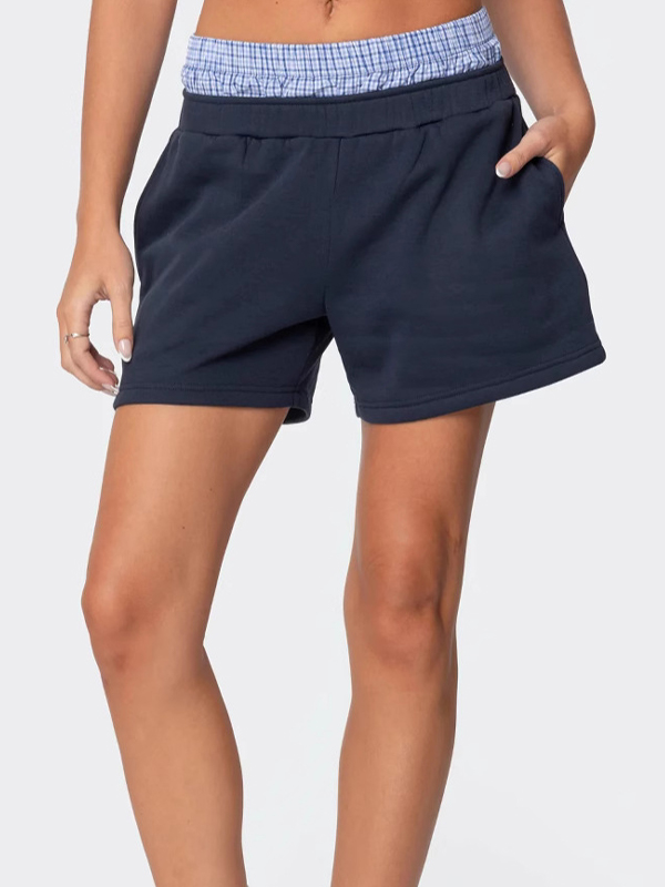 Pantalones cortos deportivos casuales con cintura a cuadros y patchwork