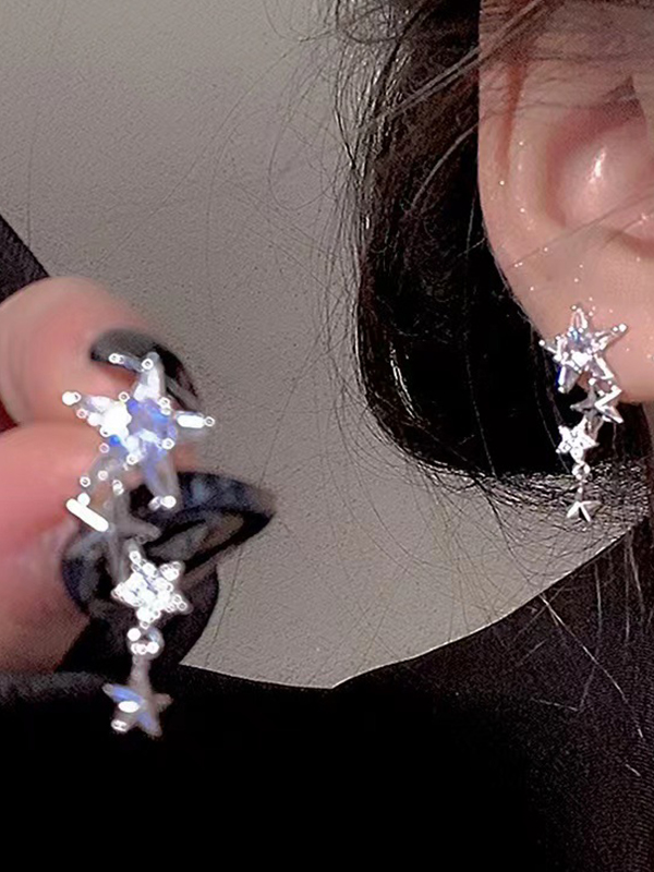 Pendiente tipo puño con eslabones de cadena y colgante de estrella brillante