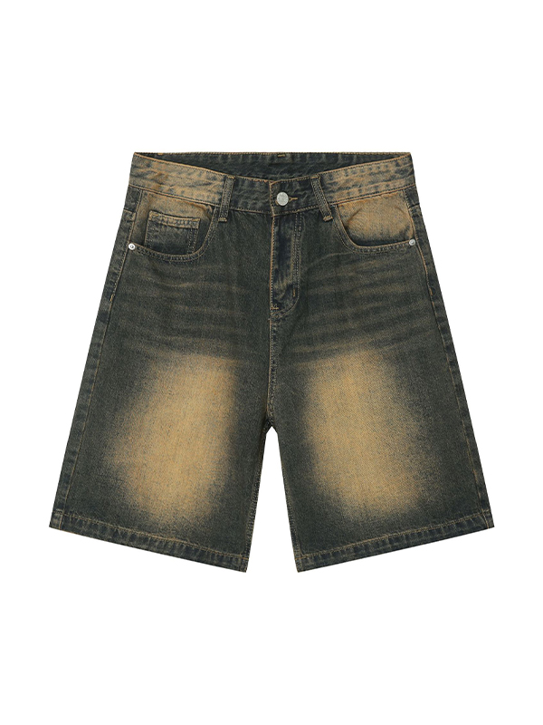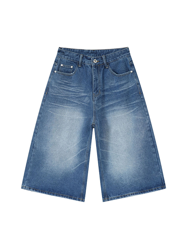 Pantalones cortos de mezclilla rectos de pierna ancha lavados retro para hombre