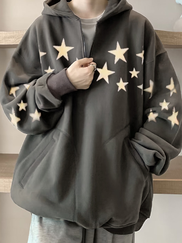 Sudadera con capucha extragrande con media cremallera y estampado de estrellas para hombre