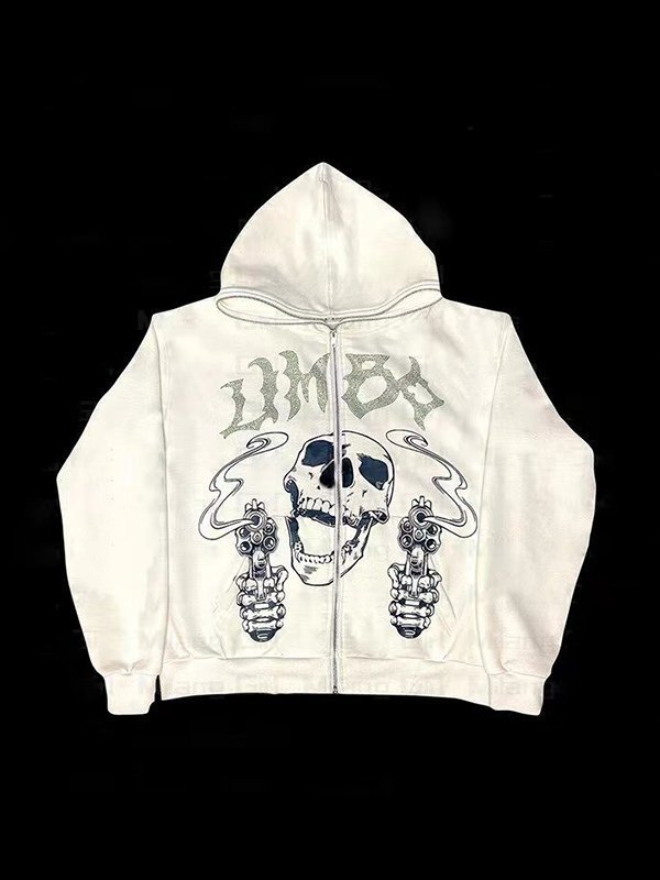 Sudadera con capucha negra con cremallera y calavera con letra de diamantes de imitación para hombre