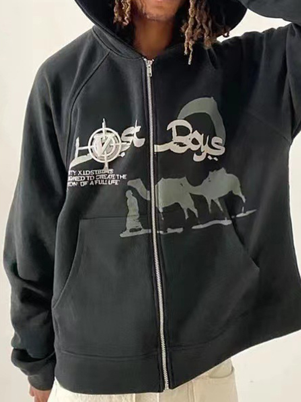 Sudadera con capucha extragrande con estampado de camello para hombre