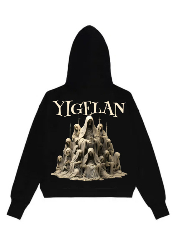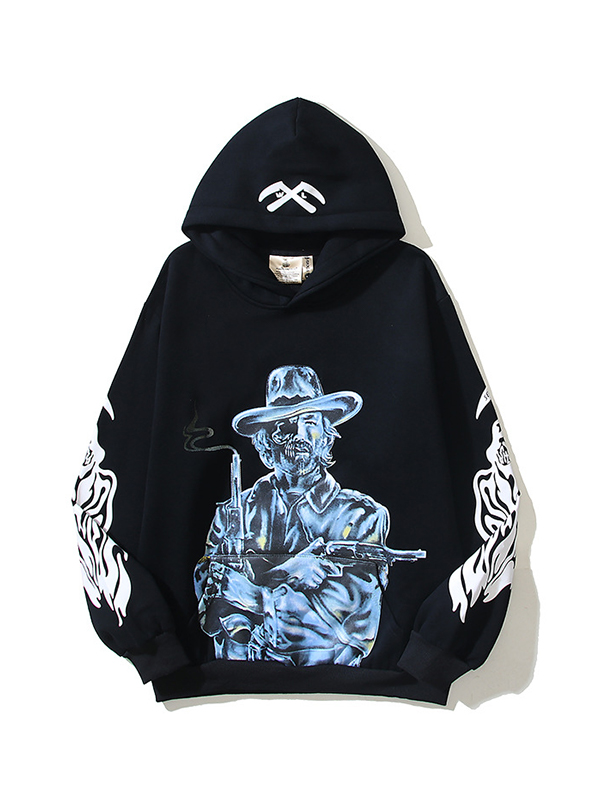 Sudadera con capucha de manga larga extragrande con estampado de terciopelo y retrato para hombre