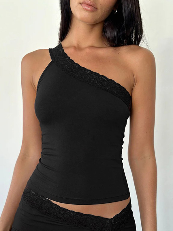 Camiseta sin mangas con encaje y hombros inclinados
