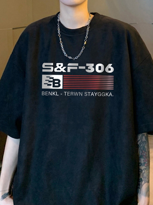 Camiseta de manga corta raglán con estampado de letras para hombre