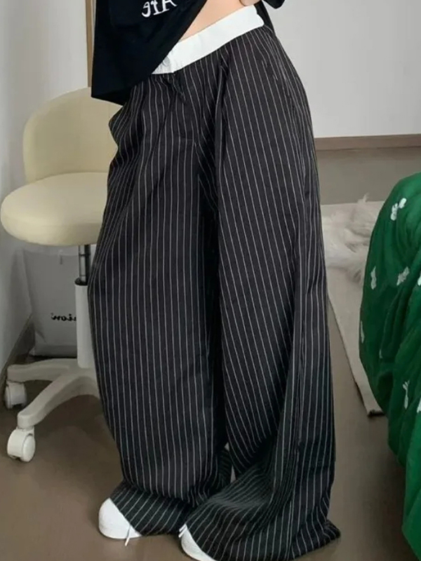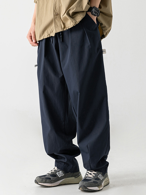 Pantalones de pierna ancha con pies atados y fruncidos lisos para hombre