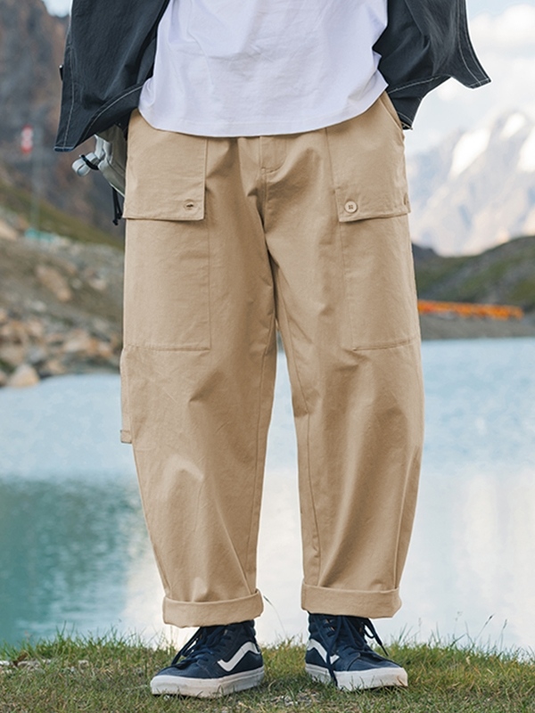 Pantalones de pierna ancha con bolsillo lateral con cremallera para hombre
