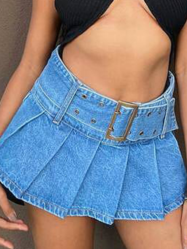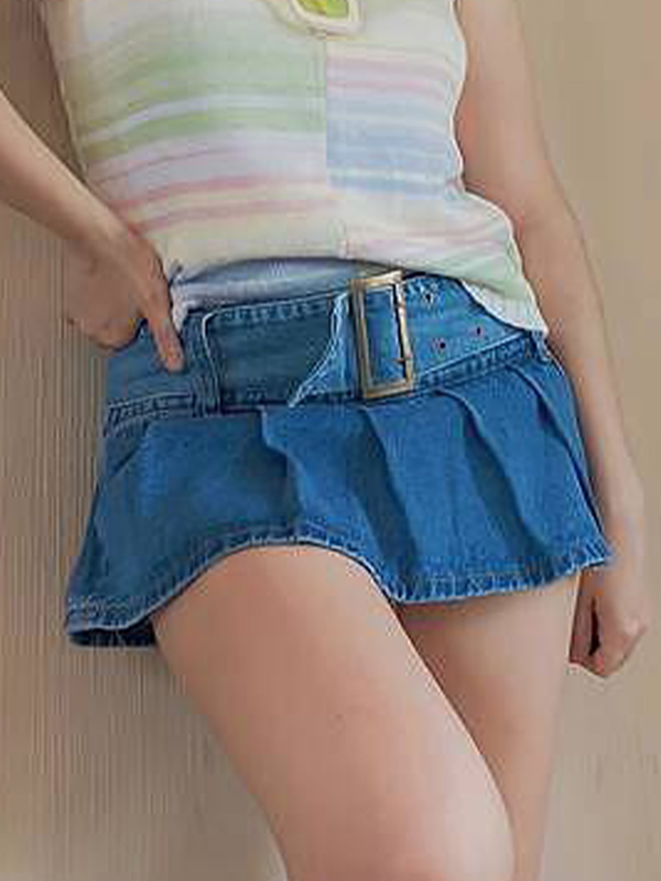 Falda pantalón corta de mezclilla plisada de tiro bajo