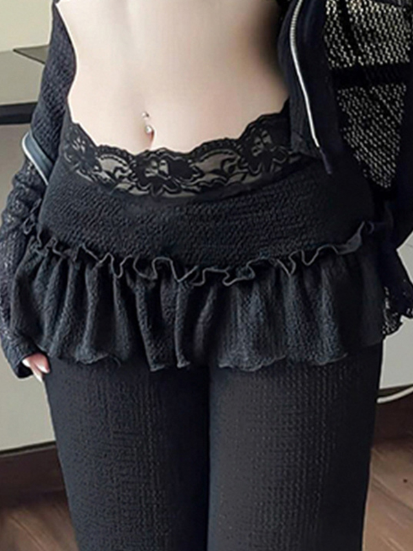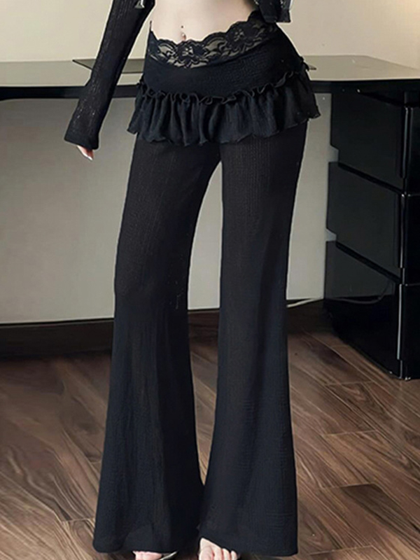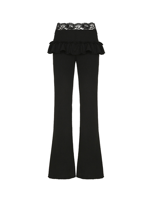 Pantalones acampanados con ribete de madera y encaje de patchwork