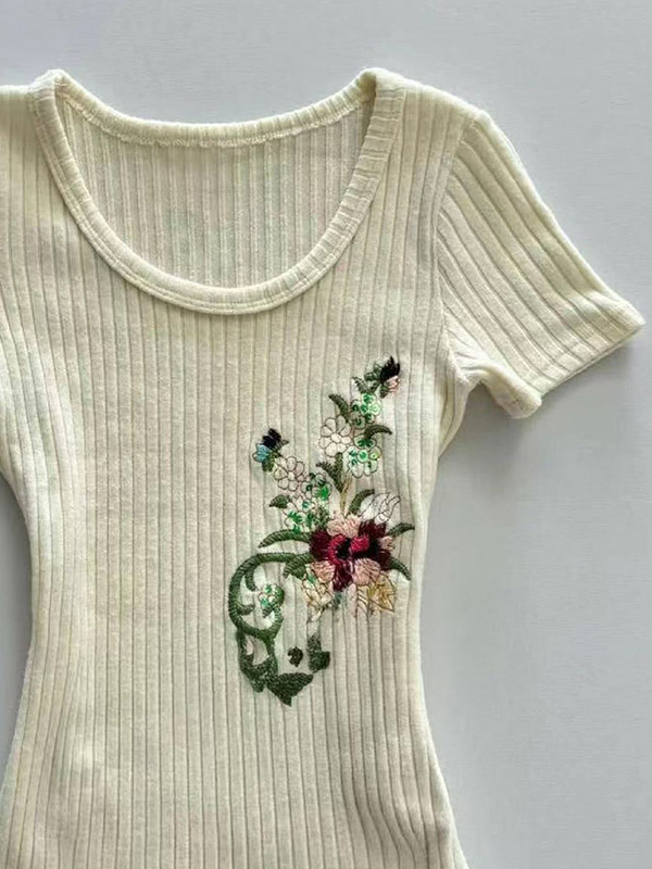 Prendas de punto de manga corta bordadas